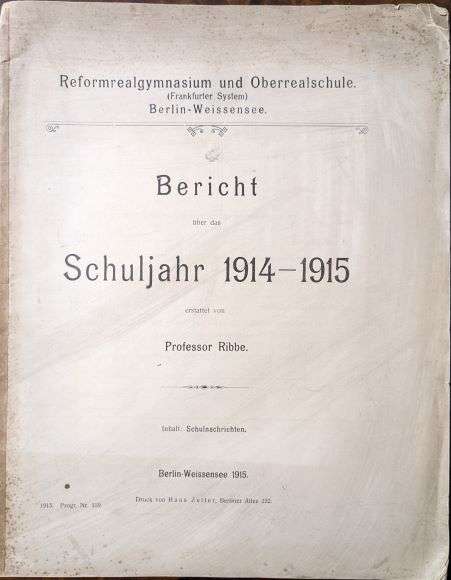 Der folgende Text ist zum einen Ergebnis der Recherchearbeit von Herrn Mittenzwei im Bundesarchiv, in dem er auf eine dicke Akte des Reformrealgymnasiums Weißensee stieß. Darin fanden sich neben vielen Verwaltungsinformationen auch Berichte über handfeste politische Konflikte im Lehrerkollegium, die es bis in die Berliner Tageszeitungen schafften; auch zur Umbenennung der Schule während des Nationalsozialismus. Zum anderen existiert bereits seit 2010 anlässlich des 100. Geburtstages des Reformrealgymnasiums Weißensee eine hauptsächlich von Frau Kirchner verfasste Broschüre, die sich auf Zeitzeug*innenberichte und eine Vielzahl von Dokumenten stützt, u.a. Protokolle der Sitzungen an der Schule, Berichte an die Bezirksverwaltung und den Magistrat.