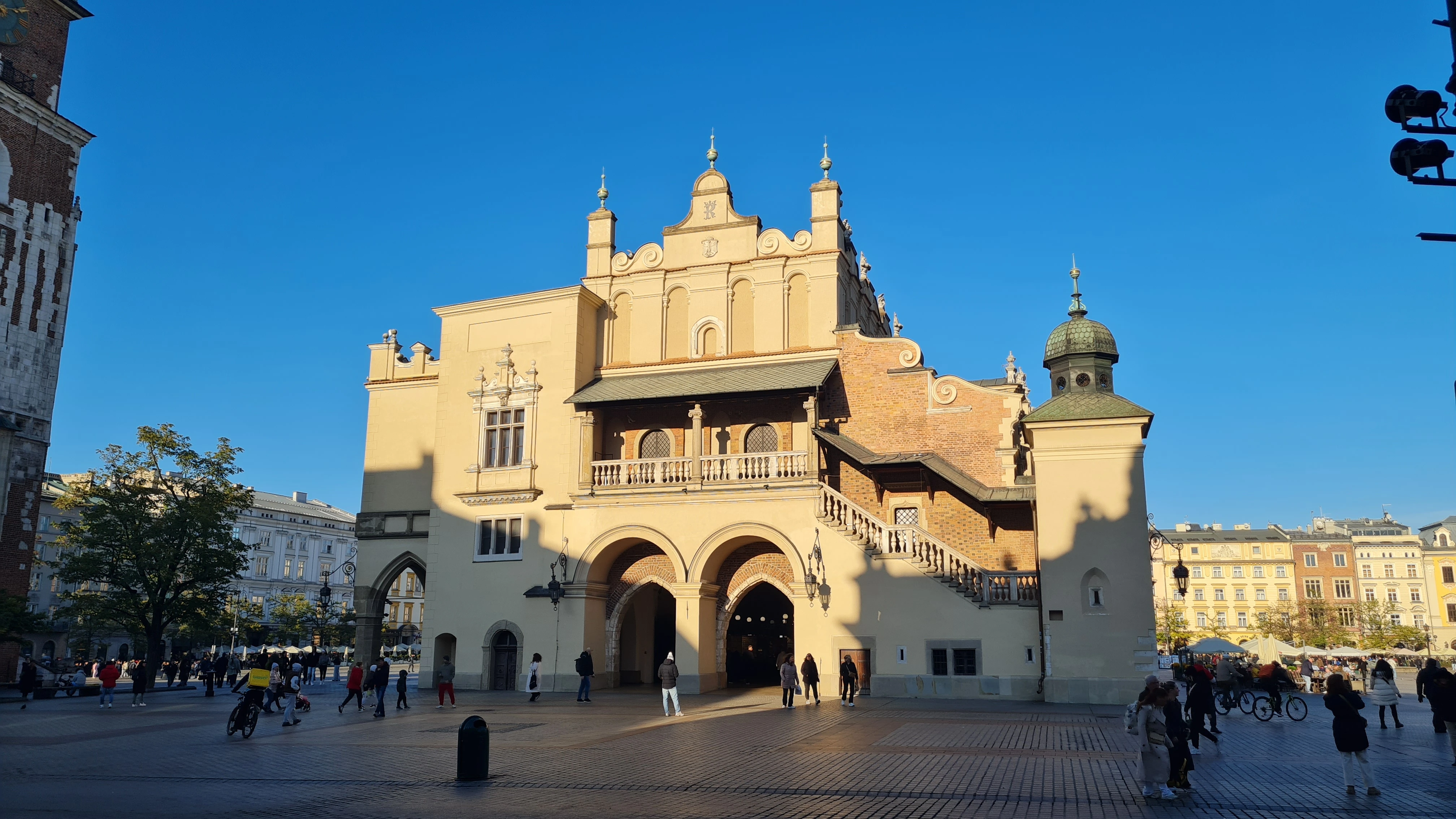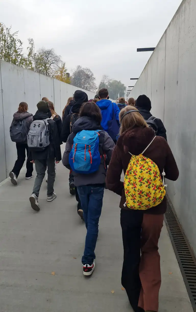 Auch dieses Jahr ging es in der Woche nach den Herbstferien mit der AG „Gedenkstättenfahrt“ nach Krakau. 33 Schüler*innen in Begleitung von Herrn Gertler, Herrn Mittenzwei und Frau Troyke-Lekschas brachen am Montag vom altbekannten Nettoparkplatz vor der Schule in Richtung Polen auf. Durch Staus und Baustellen kamen wir erst abends in Krakau an und hatten nach dem Bezug unseres Hostels, das sehr zentral in der Nähe der Tuchhallen gelegen war, noch etwas Zeit, uns einen ersten Eindruck von der Stadt zu machen und uns etwas zu essen zu besorgen.
