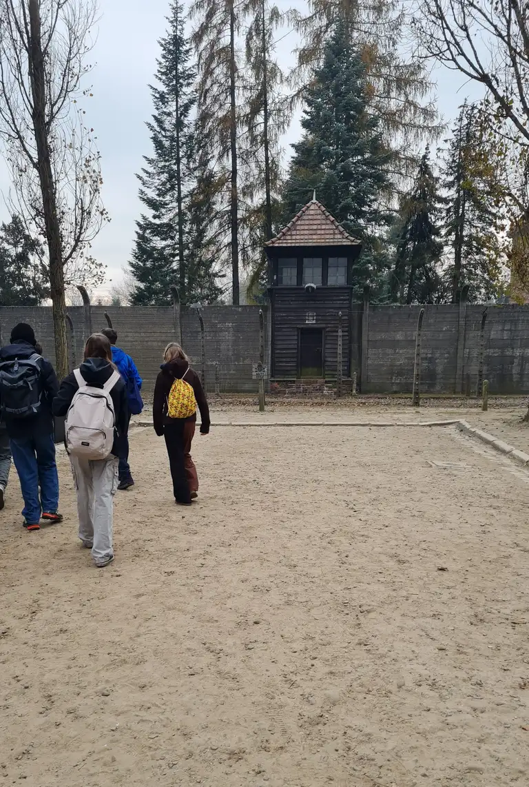 Am Donnerstag ging es kurz nach 7 Uhr morgens mit dem Bus nach Oświęcim, wo nach einem kurzen Sicherheitscheck am Eingang zur Gedenkstätte die Führung durch das Stammlager (Auschwitz I) begann. Die Ausstellung führte uns durch die verschiedenen Gebäude des Stammlagers und auch durch die sogenannte Gaskammer 1. Die Schüler*innen empfanden die Ausstellung einerseits als lehrreich und interessant, andererseits aber auch als bedrückend. Ausstellungsstücke wie etwa Bilder von abgemagerten Kindern, die Schuhe, Haare und Kleidung der inhaftierten und ermordeten Menschen und die Tatsache, dass man durch die Gebäude lief, in denen so viel Leid geschah, insbesondere der Gang durch die Gaskammer, ging uns allen sehr nahe. Nach ca. drei Stunden fuhren wir mit dem Bus in das ehemalige Vernichtungslager Auschwitz-Birkenau bzw. Auschwitz II, wo die Führung fortgesetzt wurde und wo wir uns ein Bild von den Dimensionen des Lagers machen konnten. Nach insgesamt sechs Stunden begaben wir uns mit jeder Menge Eindrücken und Informationen wieder auf den Weg nach Krakau.