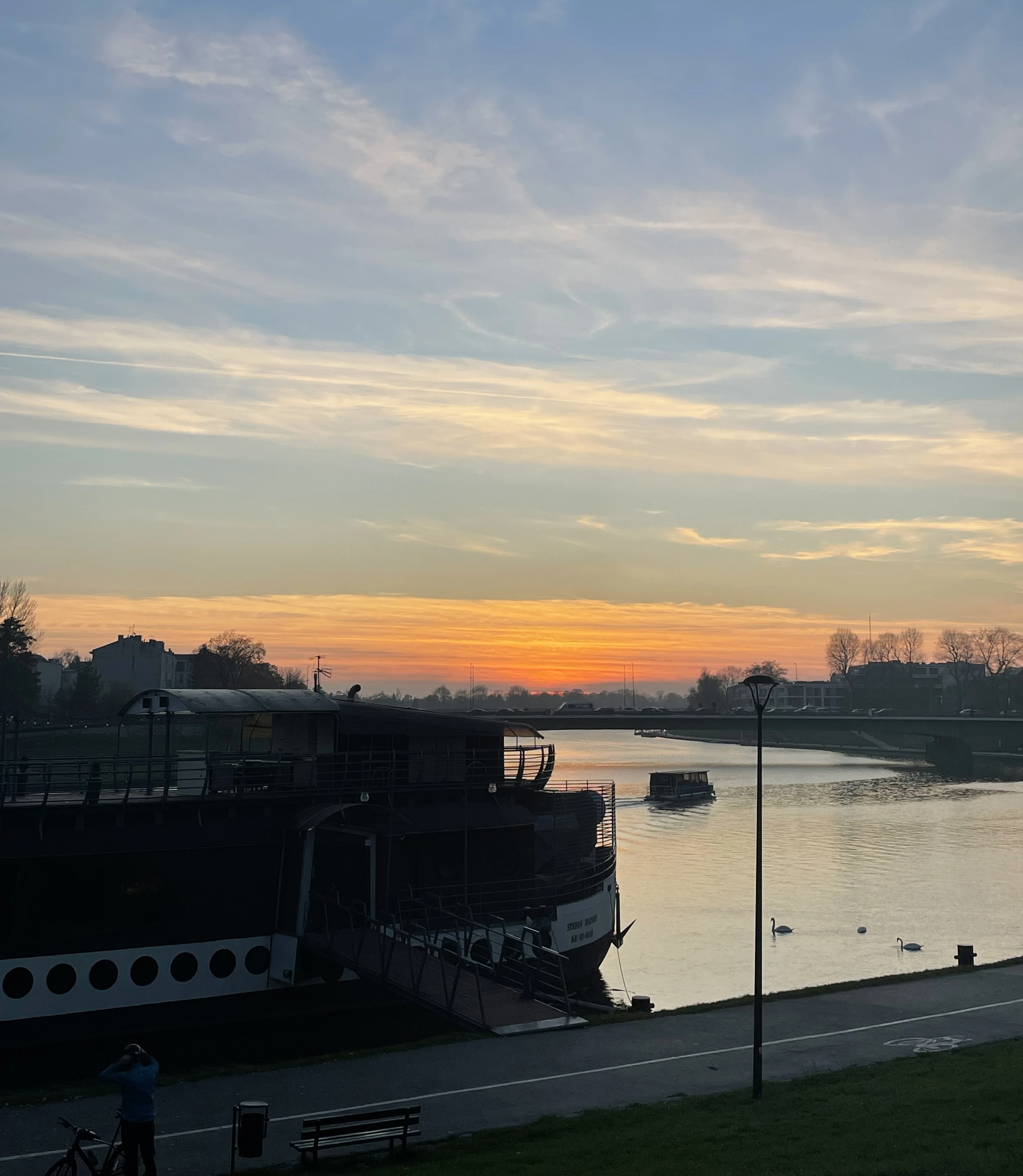 Wir sind nach der anstrengenden Anreise erschöpft ins Bett gegangen und am nächsten Morgen hat nach dem Aufwachen ein leckeres Frühstück auf uns gewartet. Anschließend ging es auch schon los zu unserer ersten Aktivität. Wir sind durch die malerische Innenstadt Krakaus gelaufen und konnten die architektonischen Meisterwerke bestaunen. Unser Spaziergang endete in der Nähe des jüdischen Viertels im jüdischen Museum Galizien. Dort hatten wir zu Beginn eine einstündige Führung durch die Fotoausstellung über das jüdische Leben in der osteuropäischen Region Galizien, wozu auch Krakau gehört. Die Ausstellung „Spuren der Erinnerung“ gab uns einen Einblick in die Zerstörung der vorher blühenden jüdischen Kultur Polens unter der NS-Herrschaft und die spätere Verwahrlosung der kulturhistorischen Güter.