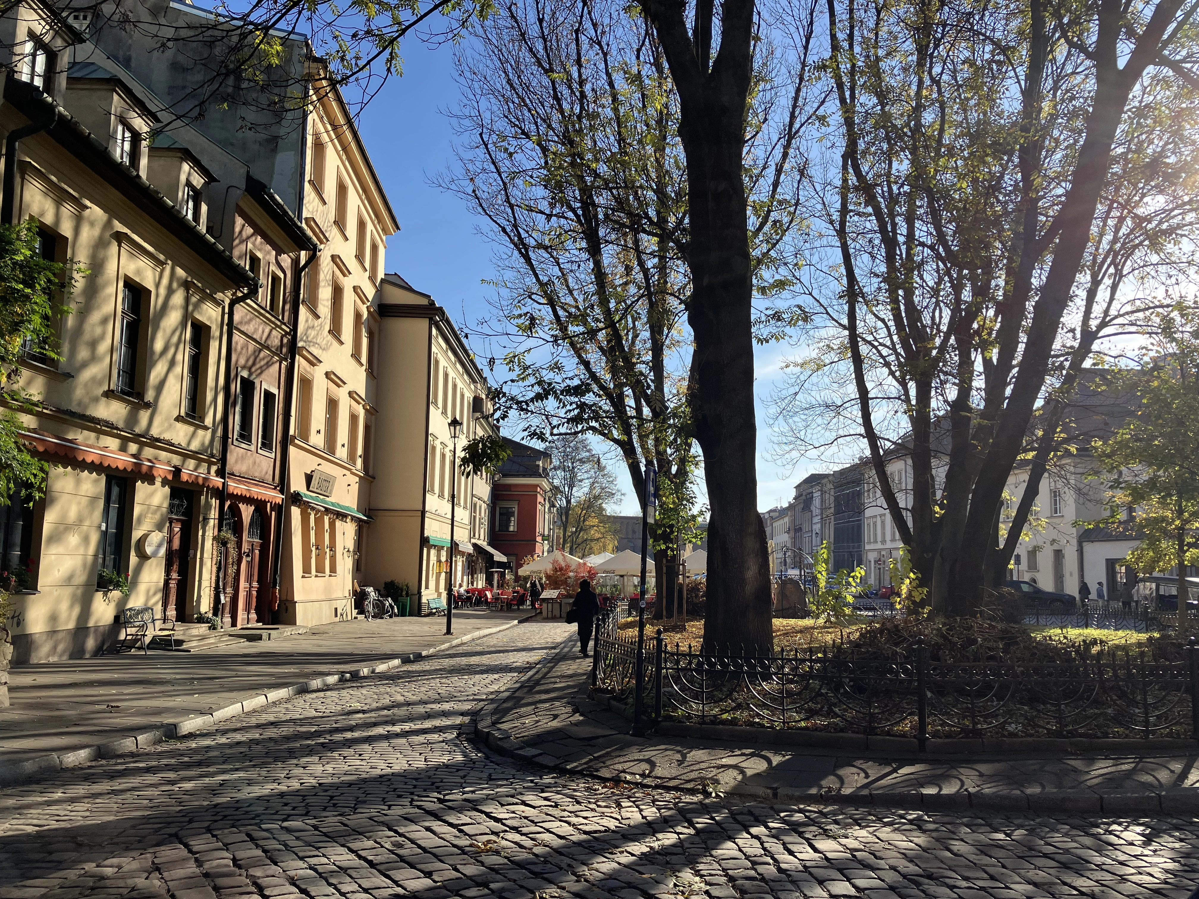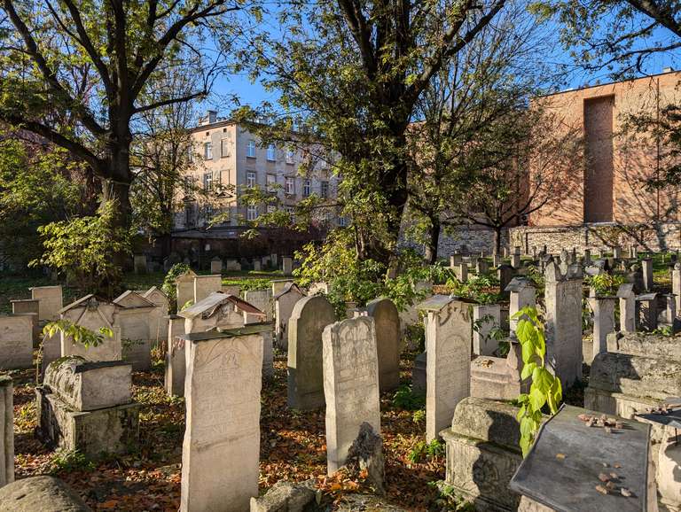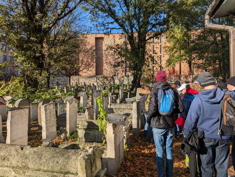 Nach dem Rundgang durch das Museum fuhren wir jüdischen Viertel Kazimierz. Dieser Stadtteil von Krakau ist nicht nur für seine bewegte Geschichte bekannt, sondern auch für die zahlreichen Spuren, die das jüdische Leben und die jüdische Kultur in der Region hinterlassen haben. Wir liefen durch enge Gassen, an denen noch immer zahlreiche alte Synagogen und jüdische Geschäfte zu finden sind. Besonders eindrucksvoll war der Besuch der Remuh-Synagoge, in der wir einen Moment der Stille hatten und uns über die Geschichte der jüdischen Gemeinde in Krakau austauschten. Unsere Führerin erklärte uns, wie das Viertel vor dem Zweiten Weltkrieg ein Zentrum des jüdischen Lebens war und welche dramatischen Veränderungen es während der Besatzung erlebte.