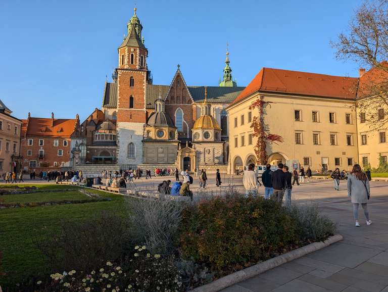 Nach dem Besuch des Museums hatten wir 2 Stunden Zeit, in denen wir uns etwas zu Essen besorgen konnten. Um 16 Uhr trafen wir uns wieder im Hotel und gingen gemeinsam zu einem weiteren Wahrzeichen der Stadt: der wunderschönen Wavelburg. Dort begann unsere Stadtrally, die uns an viele besondere Stellen der Stadt brachte. Zum Beispiel gleich zu Beginn führte uns die Rally zu dem Wavel-Drachen. Eine Skulptur, die alle 5 Minuten Feuer speit.