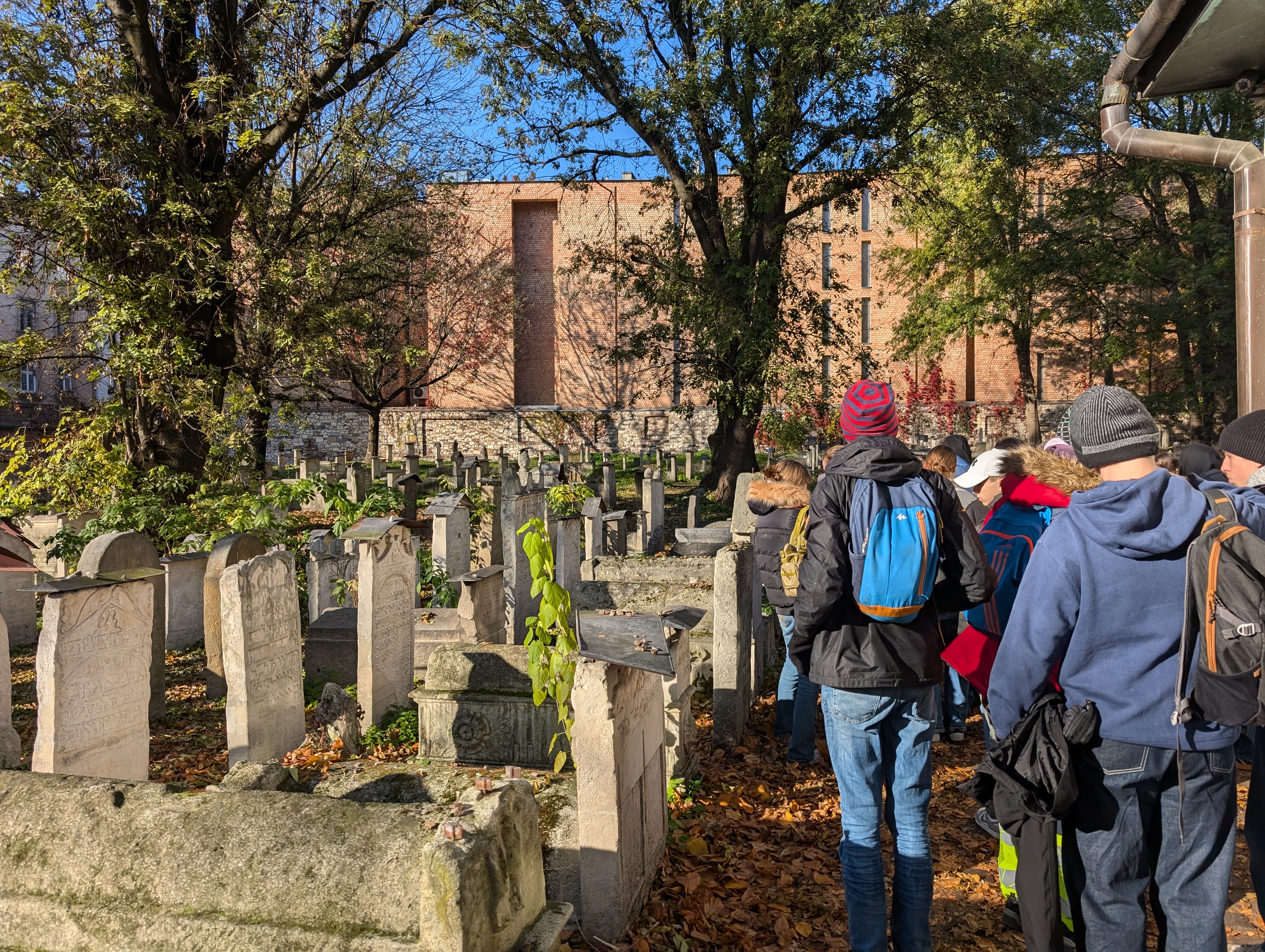 Am Mittwoch nach dem Frühstück fuhren wir mit dem Bus zum Schindler-Museum, wo wir durch die Ausstellung geführt wurden, die über die Situation in Polen vor und nach dem Überfall Polens durch die Deutschen und über Oskar Schindler informierte. Danach besuchten wir das Jüdische Viertel, wurden durch die Remuh-Synagoge und den dortigen Friedhof geführt und erfuhren auch etwas über jüdische Rituale wie etwa über die sogenannten Mesusot. Das sind Schriftkapseln, die Abschnitte aus der Tora enthalten und in Vertiefungen der Türpfosten jüdischer Wohnhäuser zu finden sind.